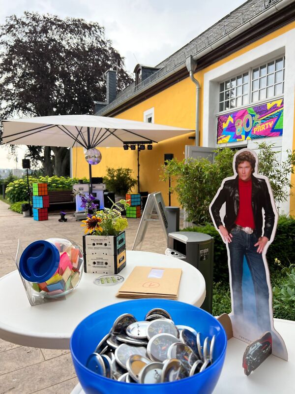 Am 30. Juni 2023 fand unser diesjähriges Sommerfest mit knapp 80 Mitarbeiterinnen und Mitarbeitern unter dem Motto „Back to the 80s!“ statt. Die Orangerie im Schlosspark in Saalfeld war der perfekte Ort für diese Veranstaltung. Ein paar Regenschauer taten der tollen Stimmung keinen Abbruch