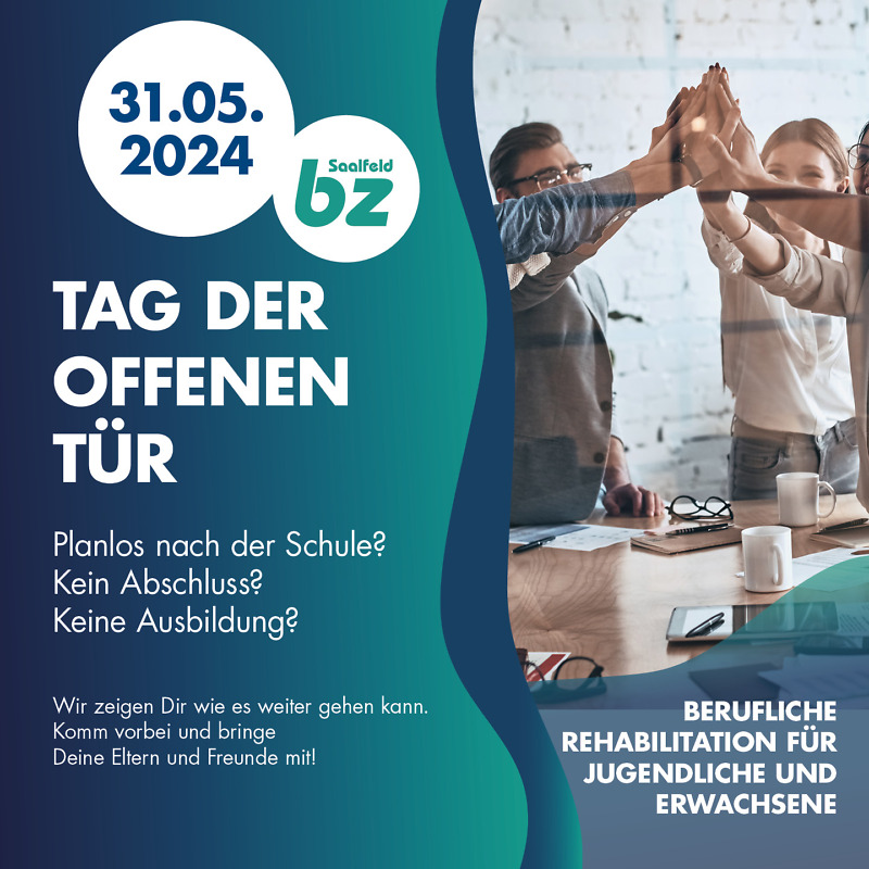 Am 31.05.2024 öffnen wir unsere Türen von 10 bis 16 Uhr an unseren Standorten Käthe-Kollwitz-Straße 2 und 2a und Am Steiger! Wir laden Sie herzlich ein uns und unseren Ausbildungsalltag im Bereich der Beruflichen Rehabilitation für Jugendliche und Erwachsene kennenzulernen.