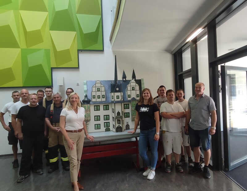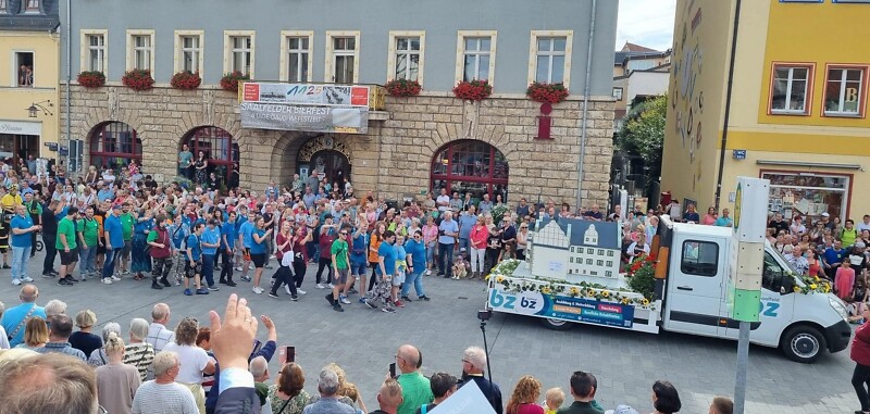 Der Festumzug zum 1125-jährigen Jubiläum von Saalfeld war eine tolle Veranstaltung, besonders für unsere Azubis aus dem Reha-Bereich. Auch das mitgeführte Rathausmodell kam beim Publikum gut an.