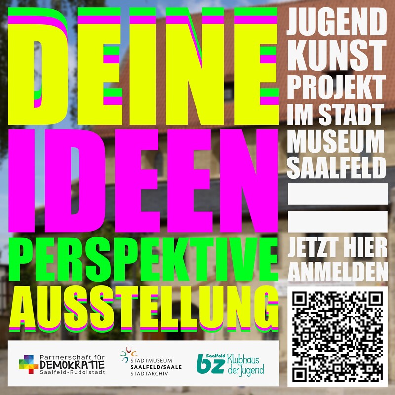 Denn du bekommst die Möglichkeit mit weiteren Jugendlichen, eine eigene Kunstausstellung im Stadtmuseum Saalfeld zu verwirklichen. Egal ob Graffiti, Fotografie, Druck, Gemälde, Lyrik, Video, Installation, Performance, usw. – du entscheidest was geht.